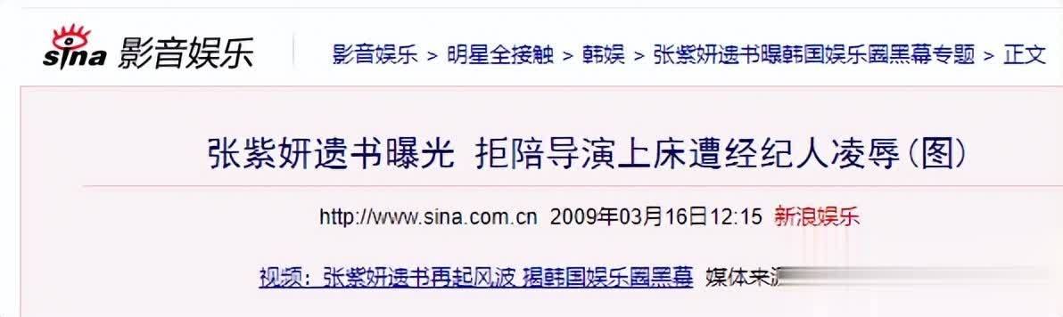 新浪娱乐:张紫妍遗书曝光 拒陪导演上床遭经纪人凌辱(图)